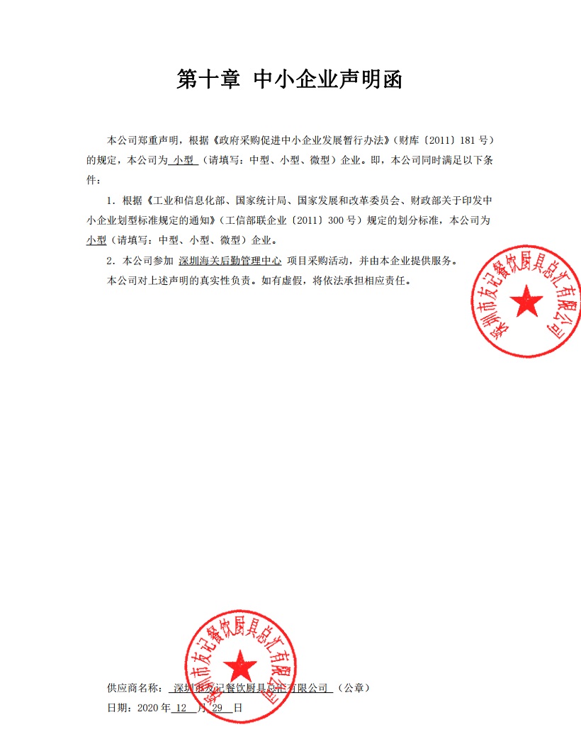 供应商名称:深圳市友记餐饮厨具总汇有限公司